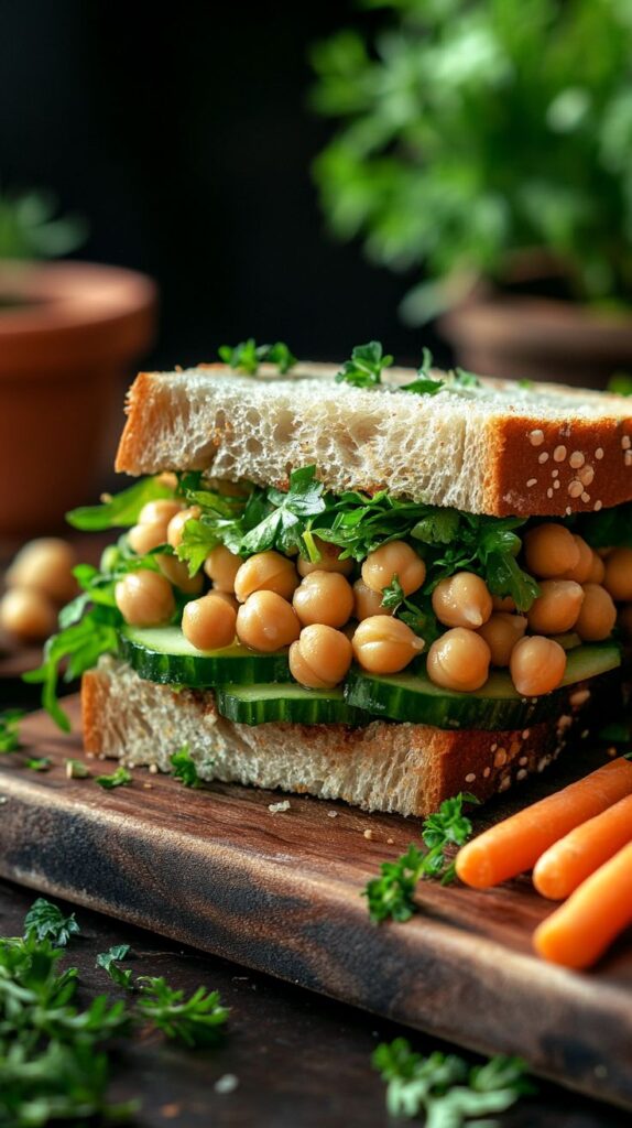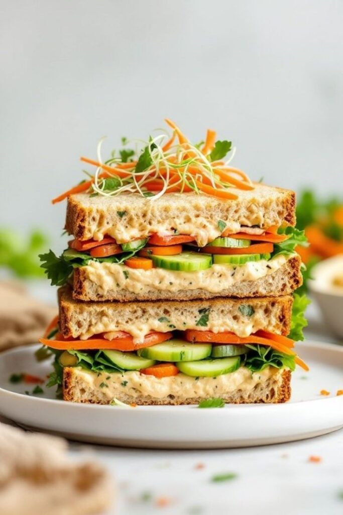 Spread hummus between cucumber slices and whole-grain bread. It’s light, cool, and ideal for hot days.