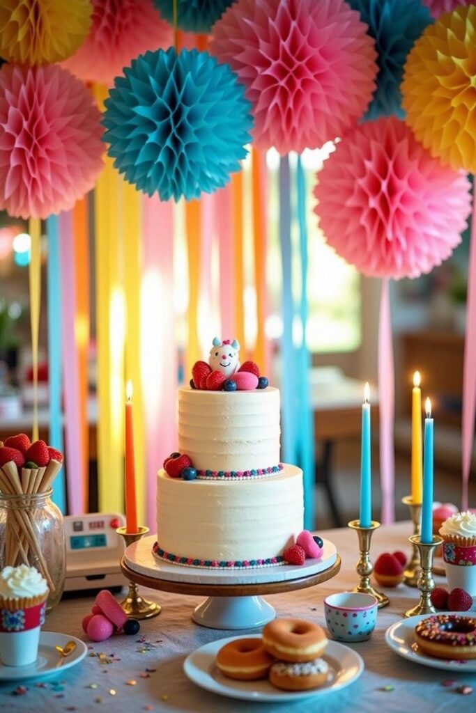 A backdrop makes your dessert table look complete. It can be created using balloons, flowers, streamers, fairy lights, or themed props. Even a simple backdrop elevates your sweet table ideas.