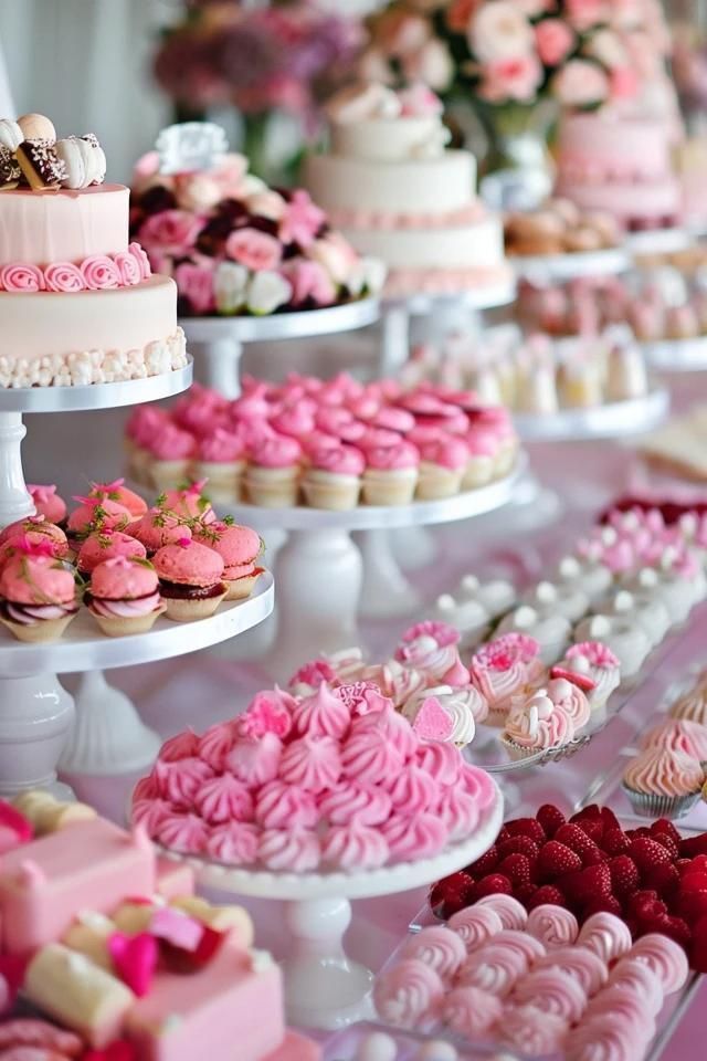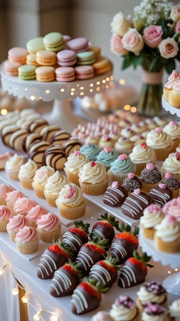 A baby shower dessert table typically includes pastel blue, pink, yellow, or green themes. Add cute items like mini teddy bear desserts, pastel macarons, and soft decorative elements. A pastel dessert table looks adorable and warm.