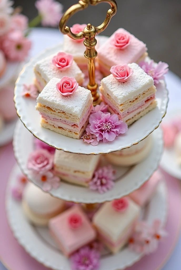 Cake stands, plates, and trays make a huge difference. Even simple white dishes look elegant.