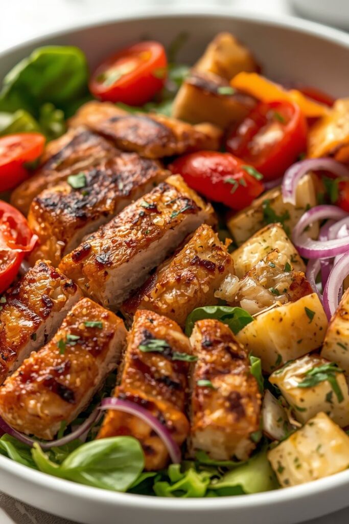 Mix cooked quinoa with grilled chicken, cherry tomatoes, cucumbers, and a drizzle of olive oil. It’s fresh, hearty, and ideal for meal prep.