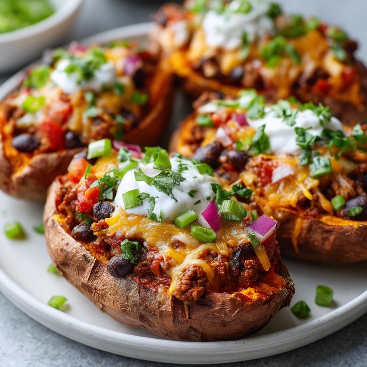A creamy, protein-packed dish flavored with turmeric, garlic, and coconut milk. Perfect for cozy nights. - Stuffed Sweet Potatoes: