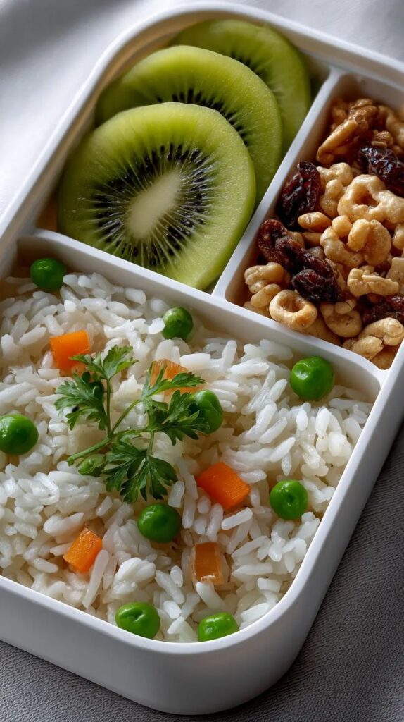 Combine cooked rice with grilled chicken pieces, cucumber, and a light yoghurt dressing. Perfect for healthy school lunch ideas for kids UK — balanced, filling, and refreshing.