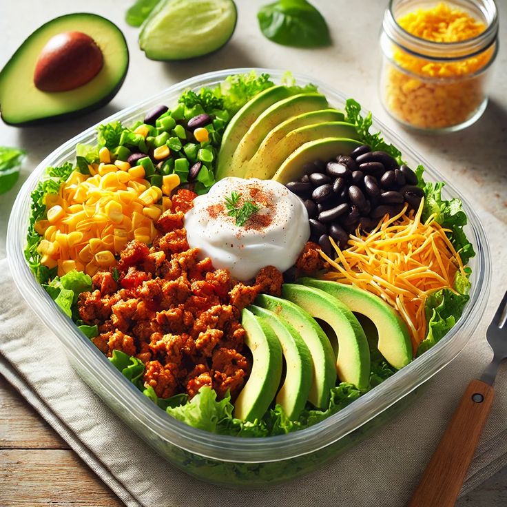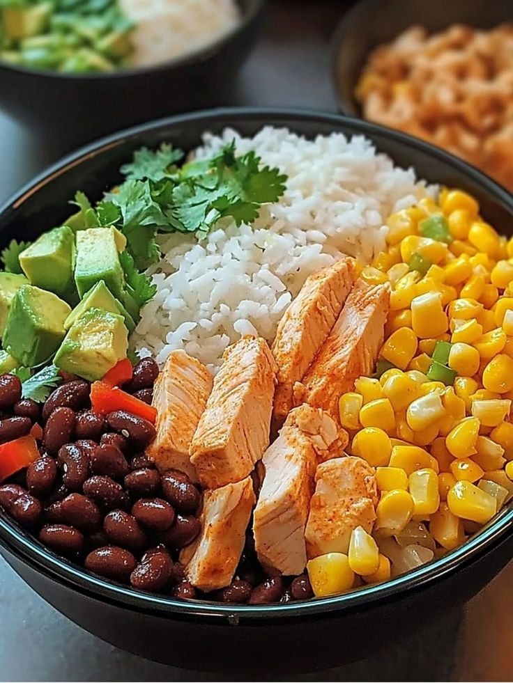 Layer rice, beans, corn, grilled chicken, salsa, and cheese. Meal prep them in containers and enjoy flavorful lunches all week.