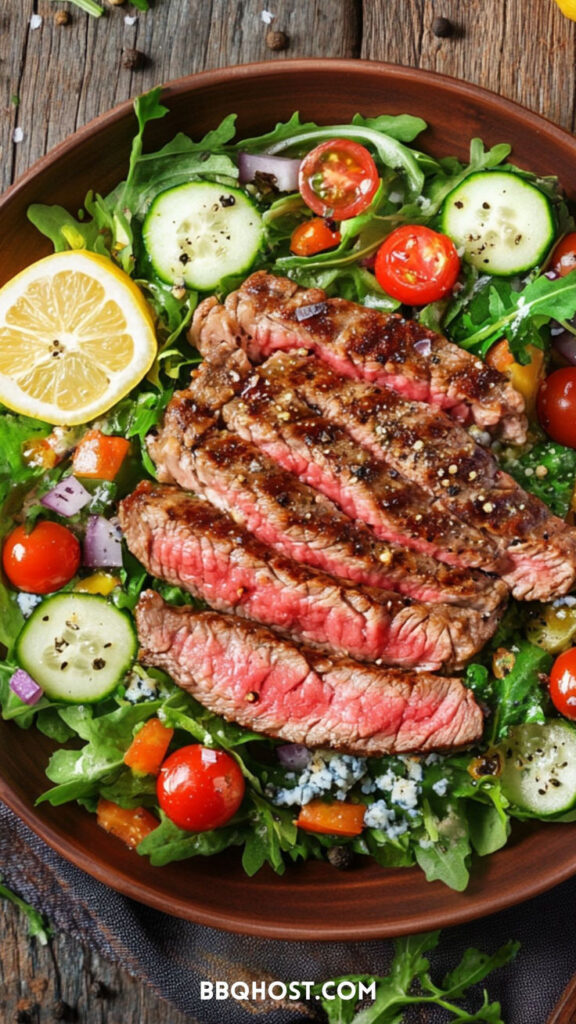 For a lighter touch, serve your steak over a crisp salad with mixed greens, cherry tomatoes, avocado, and a drizzle of balsamic glaze. This is one of those steak dinner ideas that’s both refreshing and satisfying.