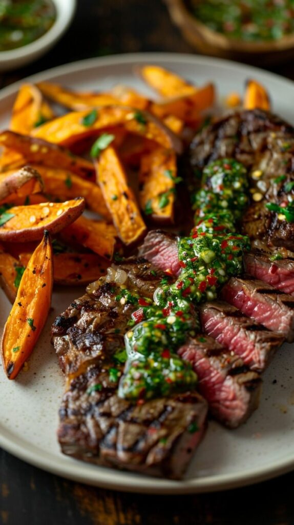 Crispy oven-baked sweet potato fries are the perfect partner for juicy steak. Add a side of garlic aioli or smoky ketchup to make it extra special.